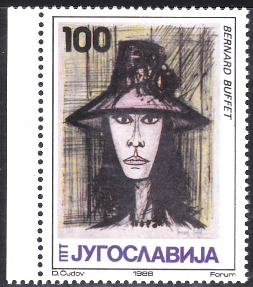 In einer Serie "Gemälde aus dem Kunstmuseum in Skopje" erschien in Jugoslawien diese Marke (MiNr 2204) mit einem Porträt von Bernard Buffet.