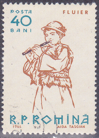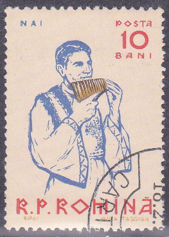 Diese Marke aus Rumänien (MiNr 1997) bildet einen Panflötenspieler ab.