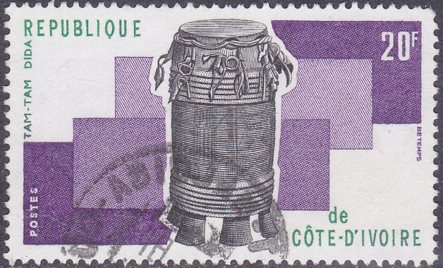 Diese Trommel kommt aus der Elfenbeinküste (MiNr 507).