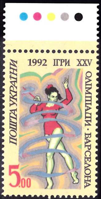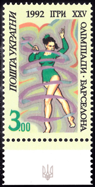 Aus der Ukraine kommt diese Marke (MiNr 83) mit einer Sportlerin die der Rhythmischen Sportgymnastik.