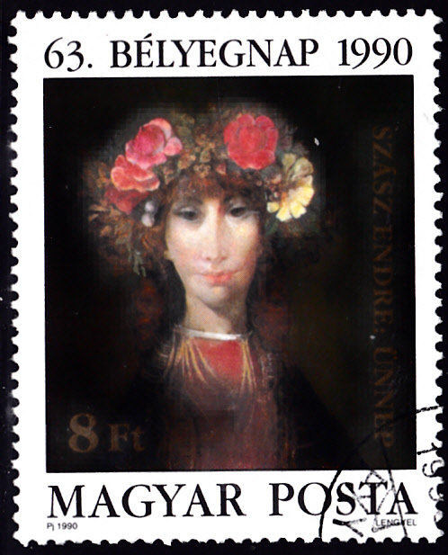 In Ungarn sind zum Tag der Briefmarke 1990 Marken mit Gemälden von Endre Szász (1926-2003) erschienen. Hier kann ich die Marke (MiNr 4107 A) mit seinem Gemälde "Fest" zeigen.