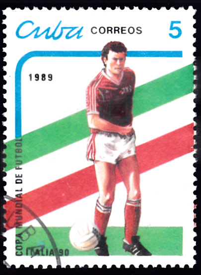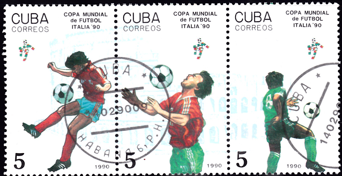 Aus einer Serie von 1989 aus Kuba zur Fußball-Weltmeisterschaft 1990 in Italien kann ich hier diese Marke (MiNr 3273) zeigen.