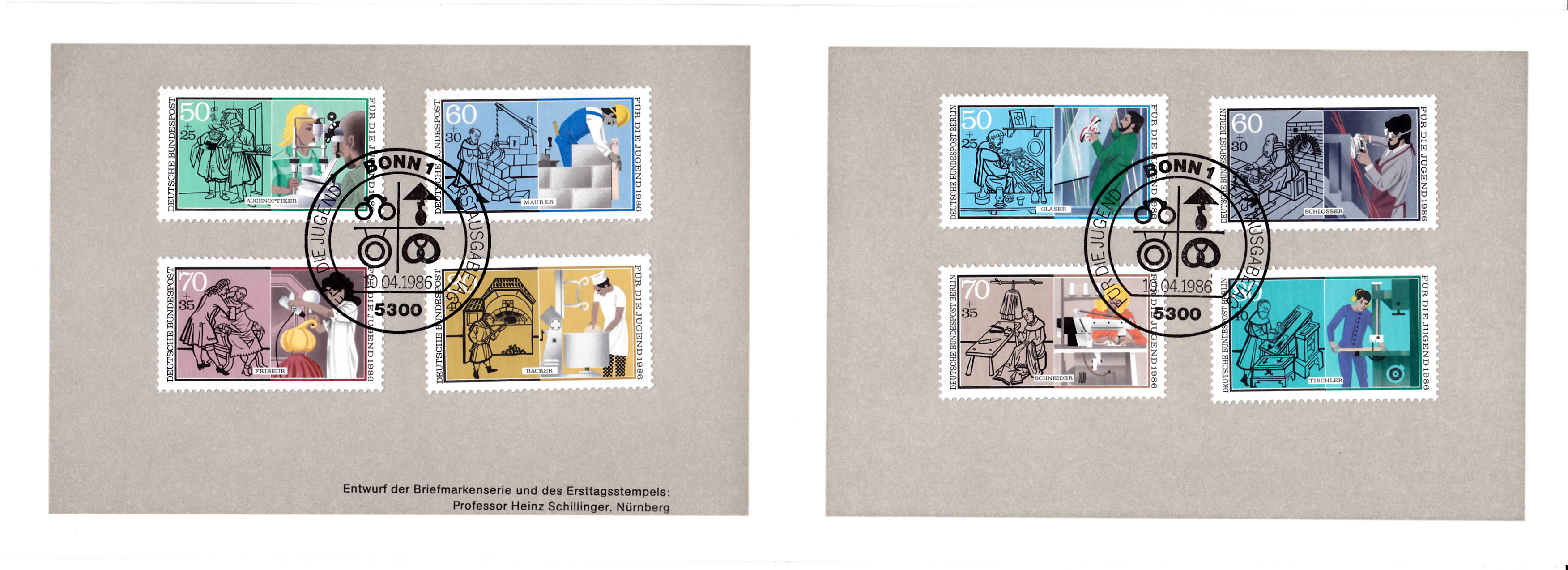 Es folgt jetzt eine noch ältere Ministerkarte aus dem Jahre 1986. Sie enthält die Jugendmarken 1986. Es sind hier sowohl die Marken der Bundausgabe als auch die der Berlinausgabe enthalten.