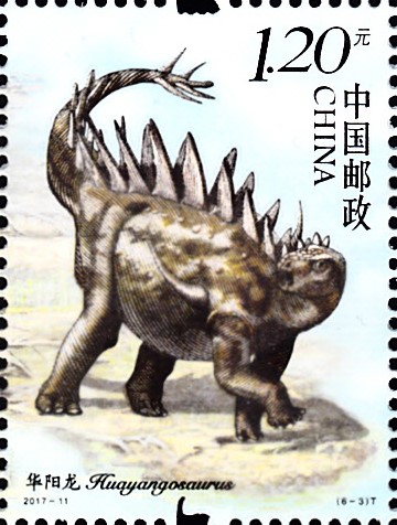 Eine weitere Marke aus der Volksrepublik China (MiNr 4896) stellt uns einen Huayangosaurus taibaii vor.