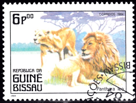 Auf einer Marke aus der DDR (MiNr 2322) wird ein junger Löwe (Panthera leo) aus dem Zoo in Leipzig gezeigt.