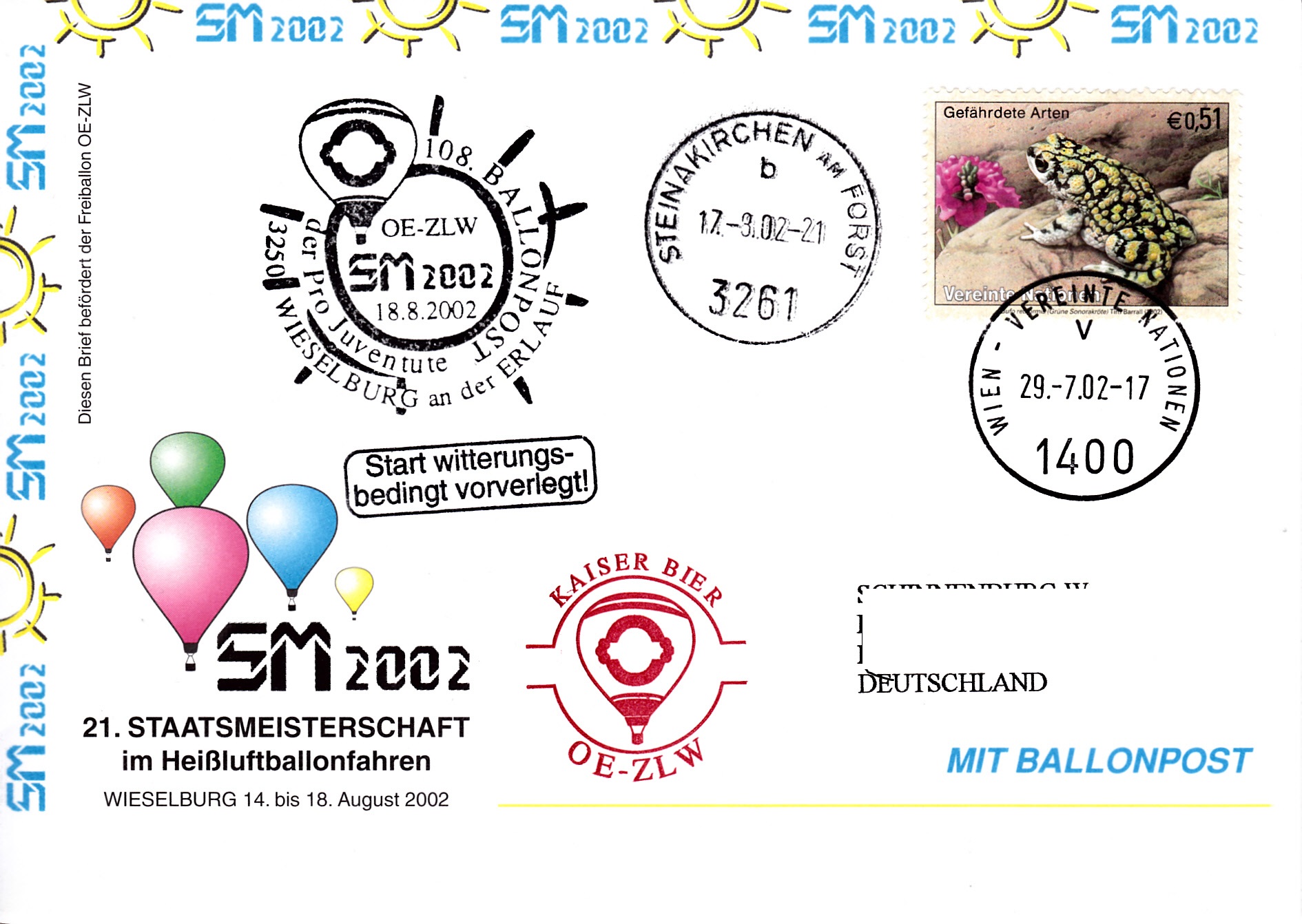 Diese Marke wurde auf diesem Brief mit Ballonpost der Pro Juventute als Frankatur verwendet.
