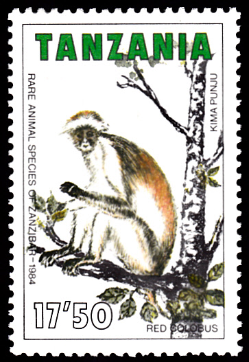 Auf einer Marken aus Tansania (MiNr 261) ist ein Westafrikanische Stummelaffe (Piliocolobus badius) abgebildet. Michel nennt als Name einfach Roter Stummelaffe (Colobus badius).