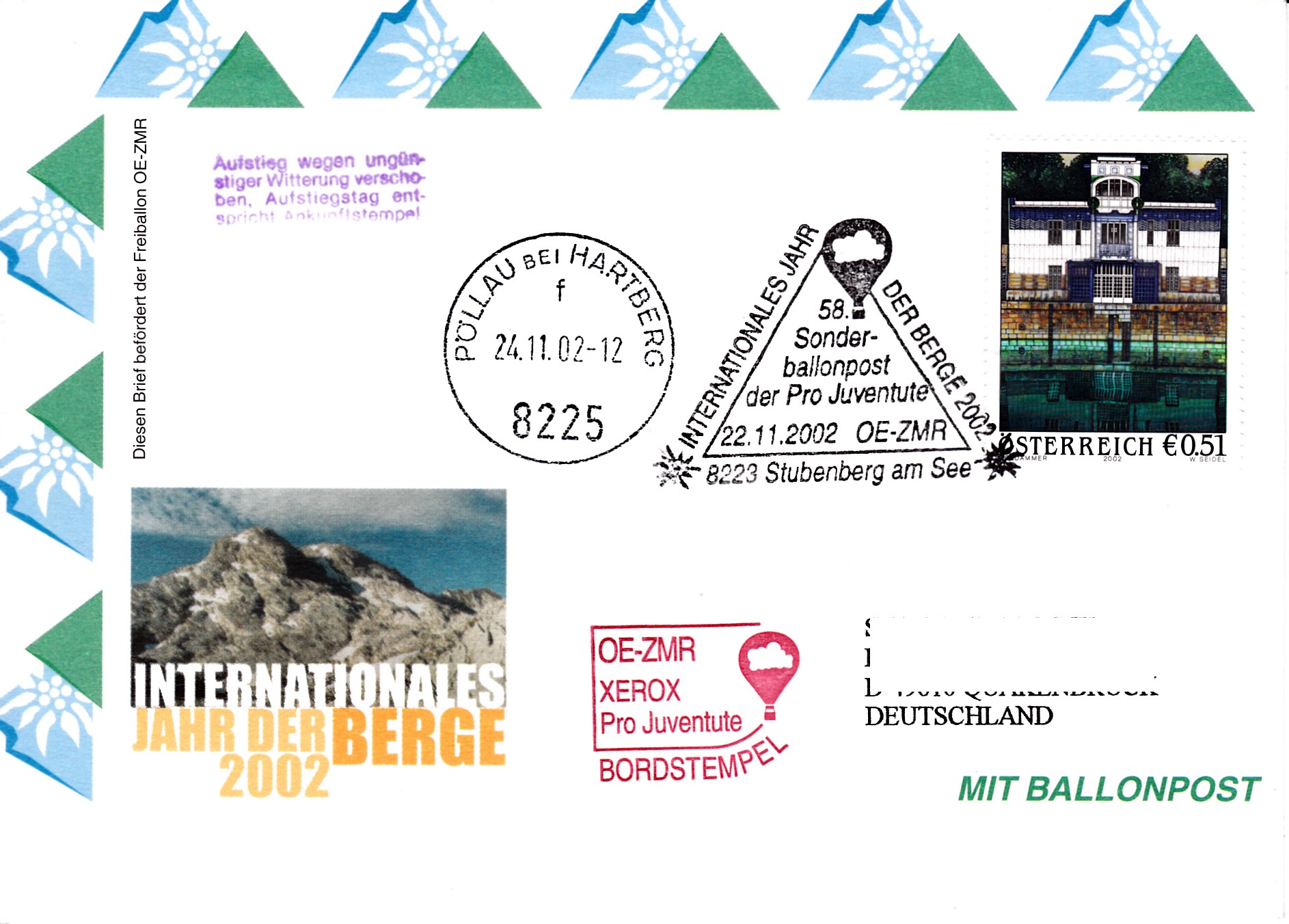 Auf diesem Brief zur 58. Sonderballonpost der österreichischen Pro Juventute ist diese Marke als Frankatur verwendet worden.