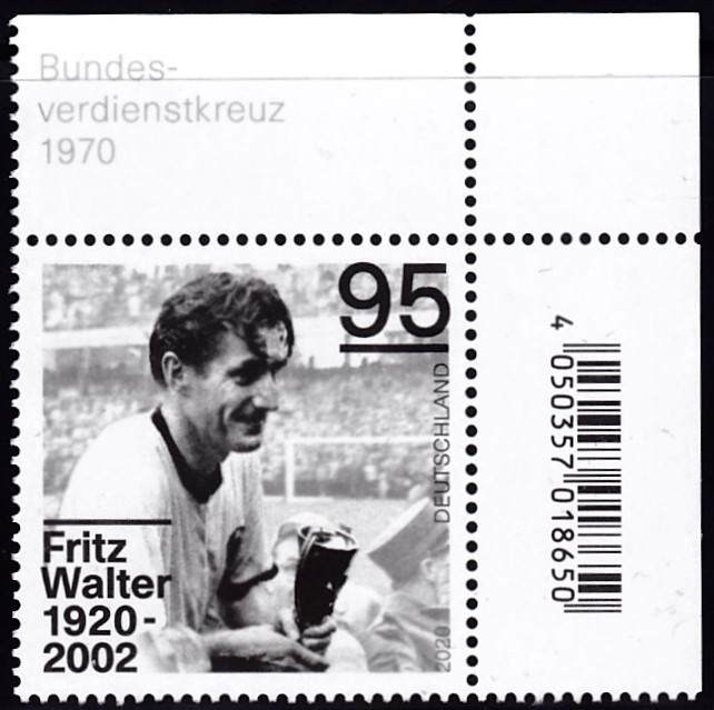 Bei der Deutschen Post erschien zu seinem 100. Geburtstag von Fritz Walter eine Marke (MiNr 3568) mit Fritz Walter mit WM-Pokal 1954 im Stadion.