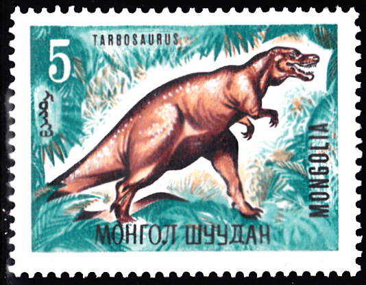 In der Mongolei ist diese Marke (MiNr 460) mit einem Tarbosaurus erschienen.