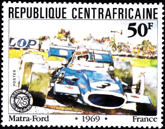 Auf der nächsten Marke dieser Serie (MiNr 778) ist ein Matra-Ford Formel-1-Rennwagen aus dem Jahre 1969 abgebildet. Mit diesem Wagen hat Jackie Stuart 1969 den Großen Preis von Frankreich im Jahre 1969 gewonnen.