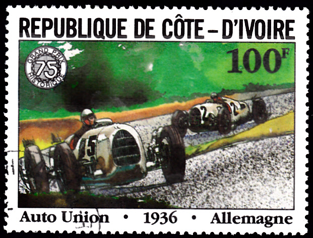 Zu dieser Ausgabe der Elfenbeinküste gehört auch noch ein Block (MiNr Block 20 mit Marke MiNr 711). Er zeigt eine zum Großen Preis von Monaco 1933.