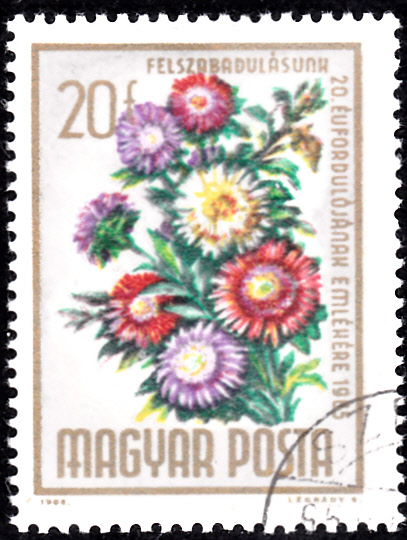 Diese Marke aus Ungarn (MiNr 2111 A) zeigt Sommerastern (Callistephus chinensis).