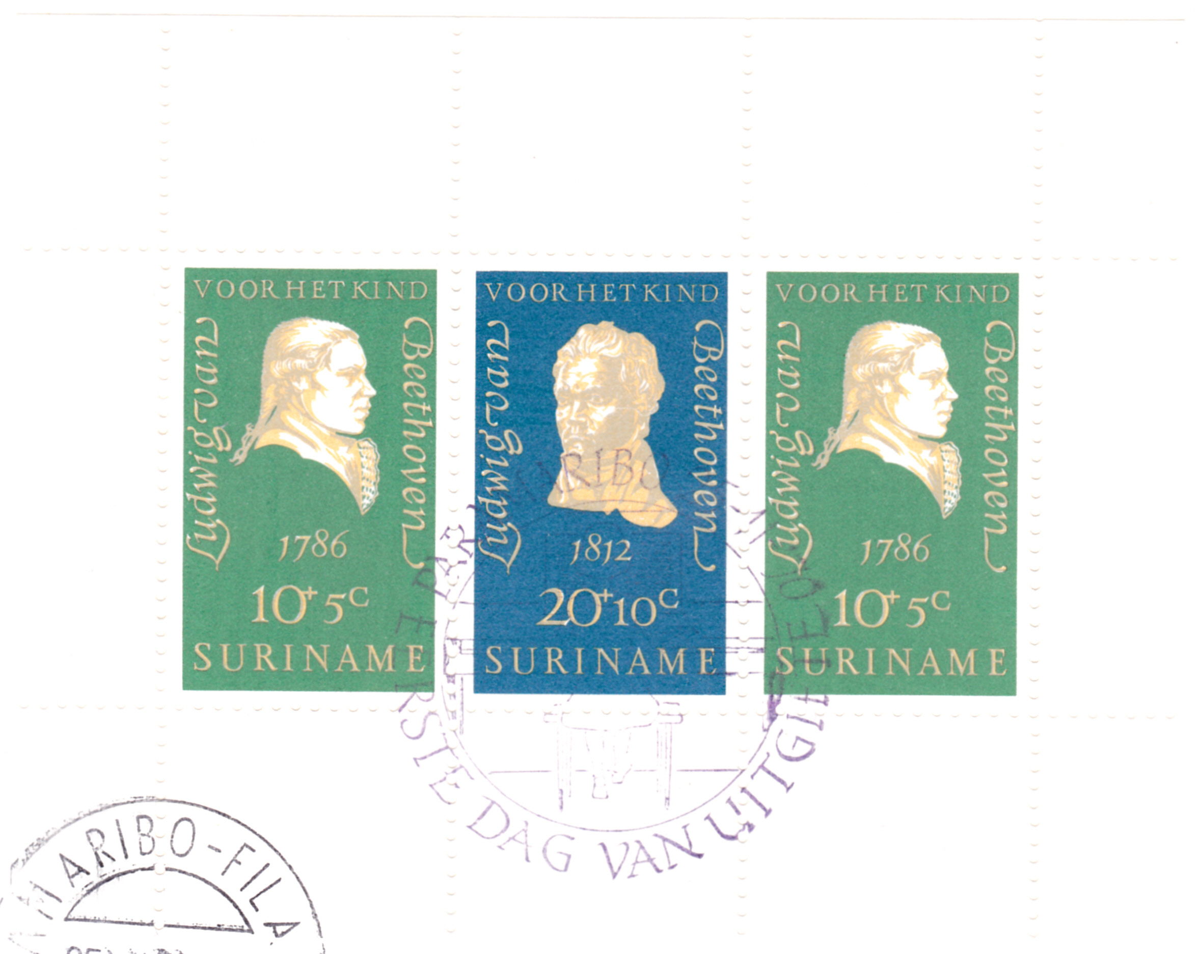 Dieser Block wurde hier auf einem FDC mit dem Ersttagsonderstempel und einem Tagesstempel entwertet worden.