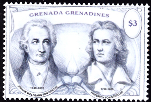 Auf einer zweiten Marke (MiNr 2940) der Serie werden wie bei der Ausgabe aus Grenada Johann Wolfgang von Goethe und Friedrich von Schiller gezeigt.