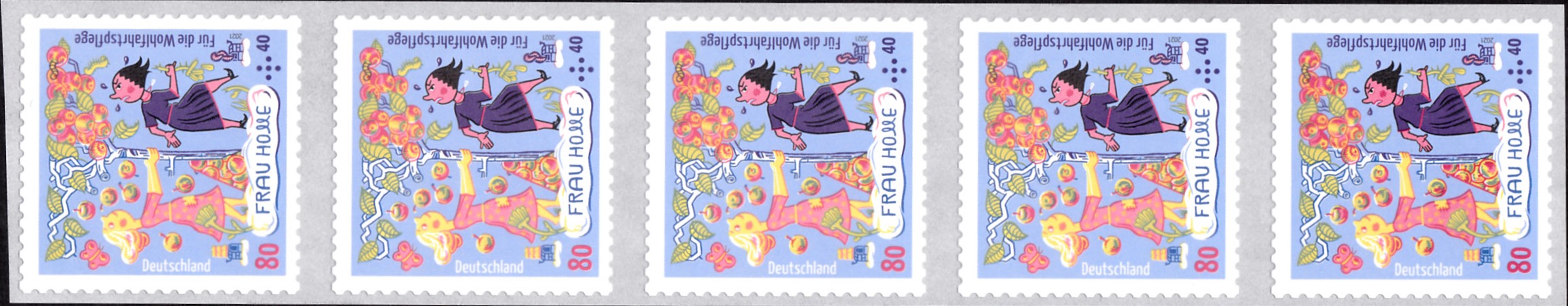 Die Marke zu 95+45 Cent (MiNr 3586) zeigt eine Darstellung zum "Ausschütteln der Betten". Zu sehen sind beide Mädchen bei dieser Tätigkeit.