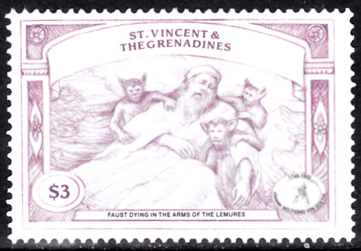 Auf dieser Marke aus St. Vincent (MiNr 4704) zeigt die Darstellung "Faust stirbt inmitten der Lemuren".