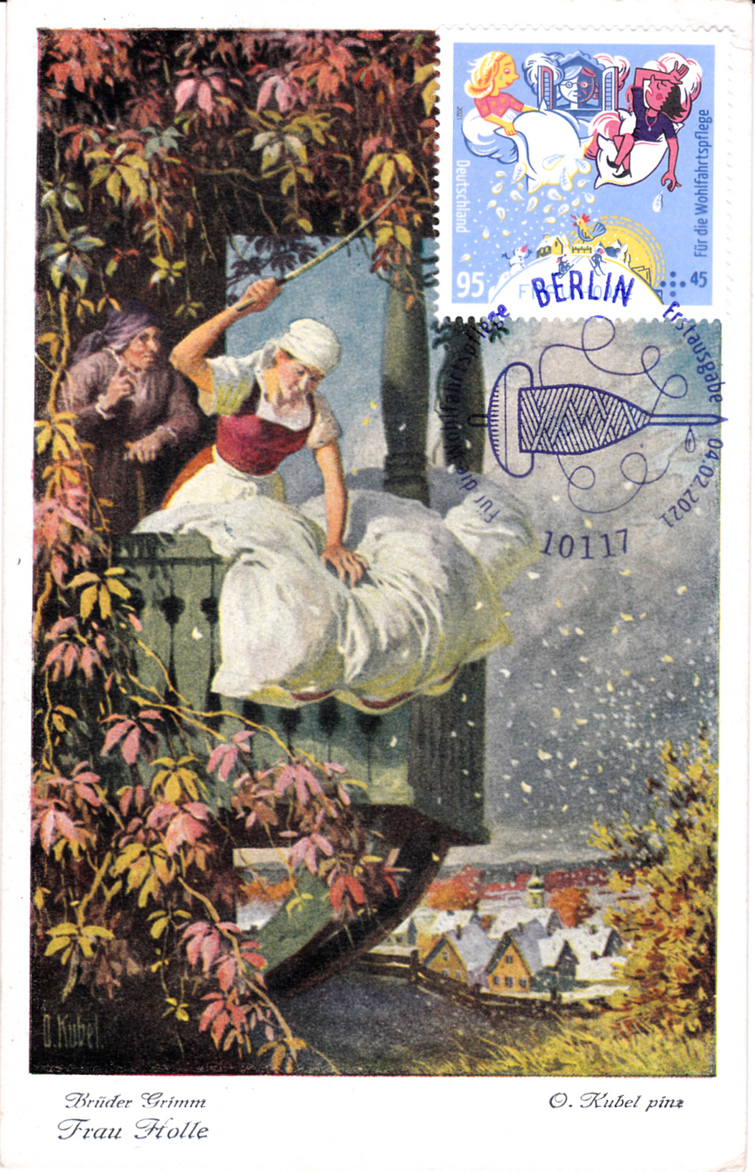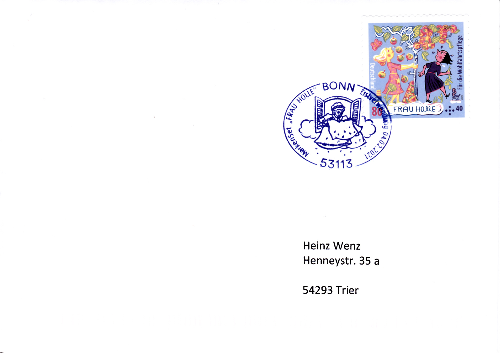 Für die selbstklebende Marke aus dem "Markenset" (das ist die Marke aus dem Heftchen) gab es ebenfalls einen eigenen "Erstverwendungsstempel". Vom Motiv würde dieser Stempel aber viel besser zur Marke 95+45 Cent passen!