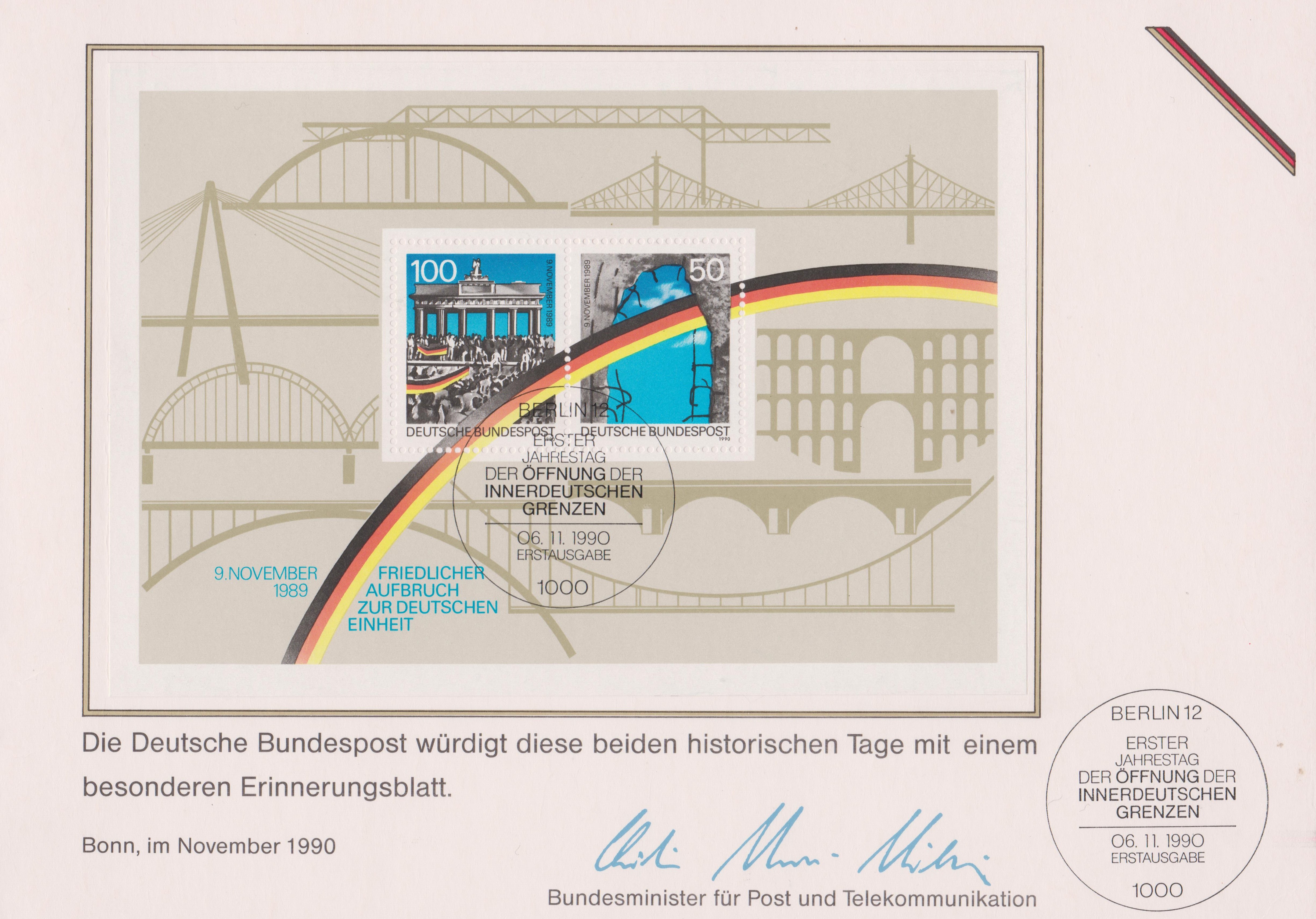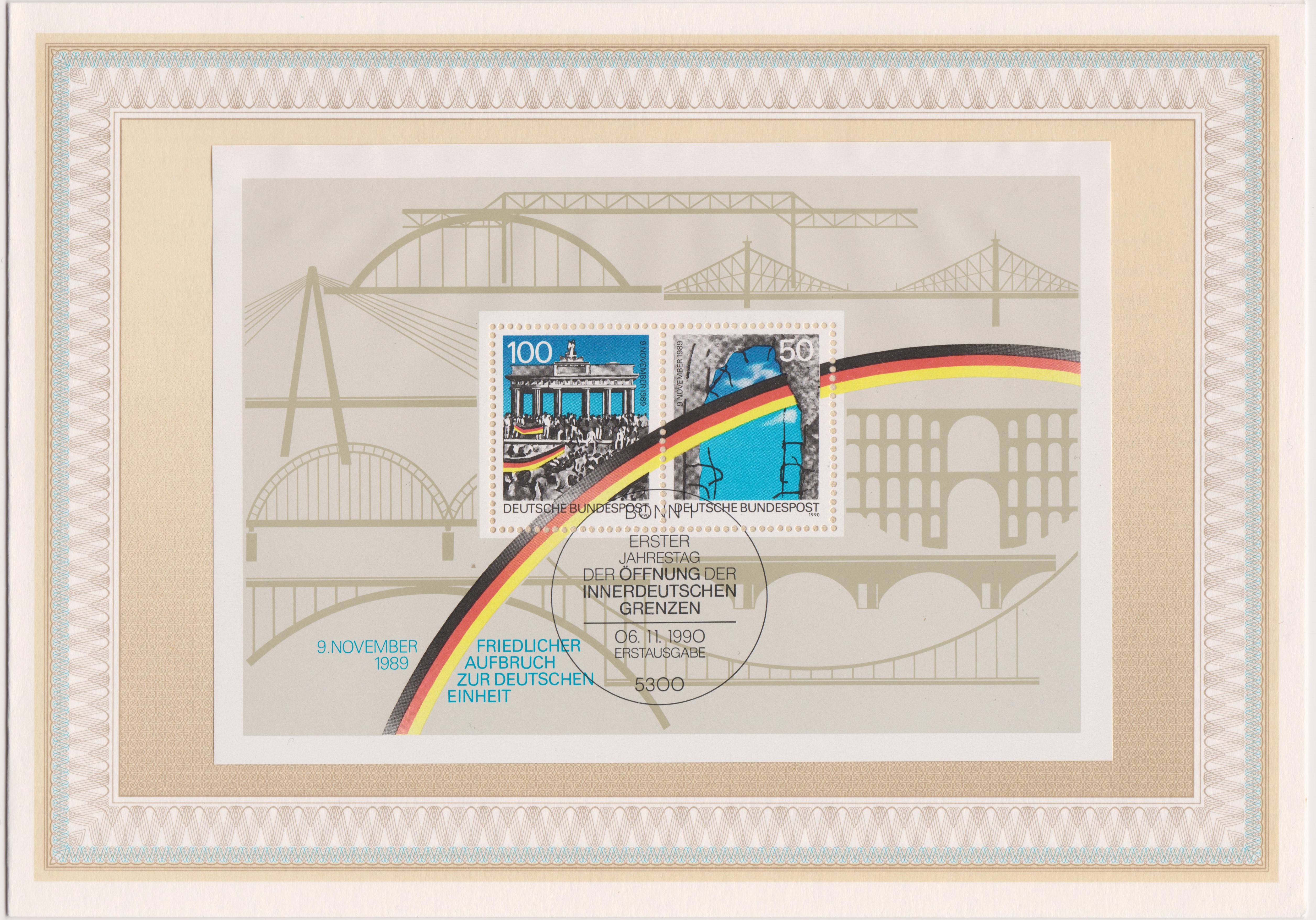 Hier als Beispiel ein FDC der Bund MiNr. 1395, erschienen am 10.11.1988, blanko gestempelt mit dem Ersttagsstempel: