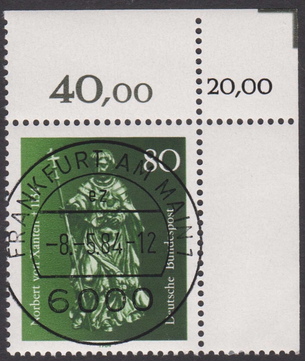 "Senkrechter roter Strich rechts neben Wertangabe "80" in der abgebildeten Marke MiNr. 1273", der bei einer Teilauflage auf Feld 5 auftrat und gestempelt 24 Michel-€ wertet!