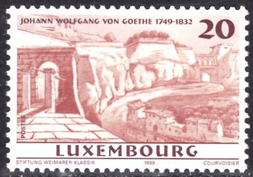 Aus Luxemburg kommt diese Marke (MiNr 1489 ) zum 250. Geburtstag von Johann Wolfgang von Goethe. Sie zeigt das Tor zum Breitenweg im Stadtgrund nach einer Zeichnung von Johann Wolfgang von Goethe.