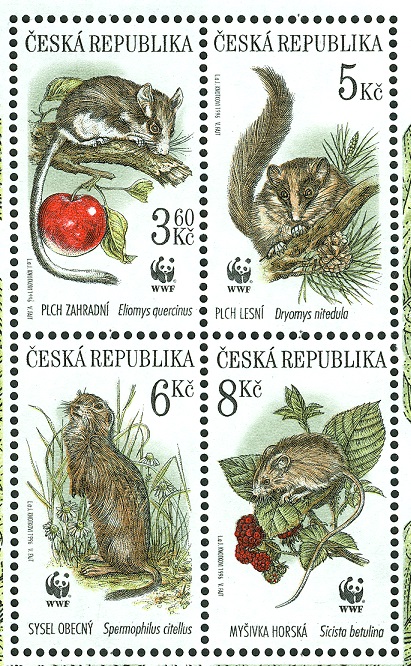 Einen Block mit Nager-Motiven gab die tschechische Post heraus. Der Block enthält 2 identische Zusammendrucke.