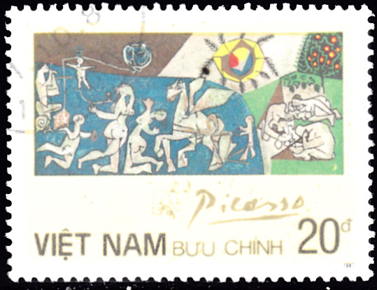Heute kann ich weitere Marken aus dieser Serie aus Vietnam zeigen. Diese Marke (MiNr 1854) zeigt ein Gemälde mit Pferdewagen von Pablo Picasso.
