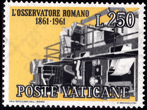 Im Vatikan ist zum Jubiläum "100 Jahre Zeitung 'L’Osservatore Romano'" eine Marke (MiNr 375) mit den Titelseiten der Ausgaben von 1861 und 1961 erschienen.