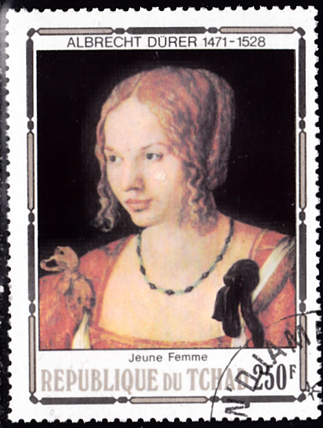 Zum 450. Todestag von Albrecht Dürer sind im Tschad vier Marken erschienen. Auf der Marke zu 60Fr (MiNr 831) sehen wir Dürers Gemälde "Bildnis eines jungen Mannes".