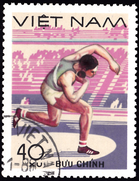 Die hier bereits gezeigte Marke aus San Marino (MiNr 645) mit einem Kugelstoßer wurde auf diesem FDC zusammen mit vier weiteren Marken der Serie am Ersttag gestempelt.