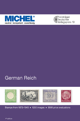 Am 16. April 2021 ist der Michel German Reich in der 1. Auflage in Farbe mit 112 Seiten im Format 155 mm x 230 mm als Hardcover erschienen. Der Katalog kostet 29,80 €. Er beinhaltet folgende Gebiete: Deutsche Briefmarken von 1872 bis 1945; d.h. Kaiserreich, Inflationszeit, Weimarer Republik und Drittes Reich inkl. Dienstmarken und Markenheftchen.