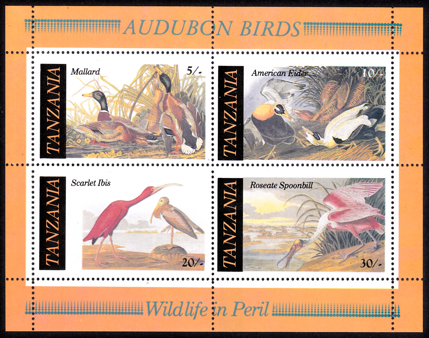 Auf einer Marke aus Tansania (MiNr 317) aus der Serie zum "200. Geburtstag von John James Audubon", einem US-amerikanischen Ornithologen und Zeichner, wird eine Zeichnung von Audubon mit einem Scharlachsichler (Eudocimus ruber) gezeigt.