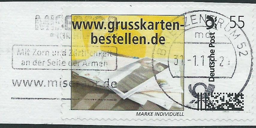 Hier werden Grusskarten bestellt: 55 ct abgestempelt im Briefzentrum 52 am 31.1.11