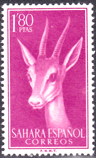 In Spanisch-Sahara sind zwei bildgleiche Marken mit der Abbildung eines Kopfes einer Dorkasgazelle (Gazella dorcas) erschienen.