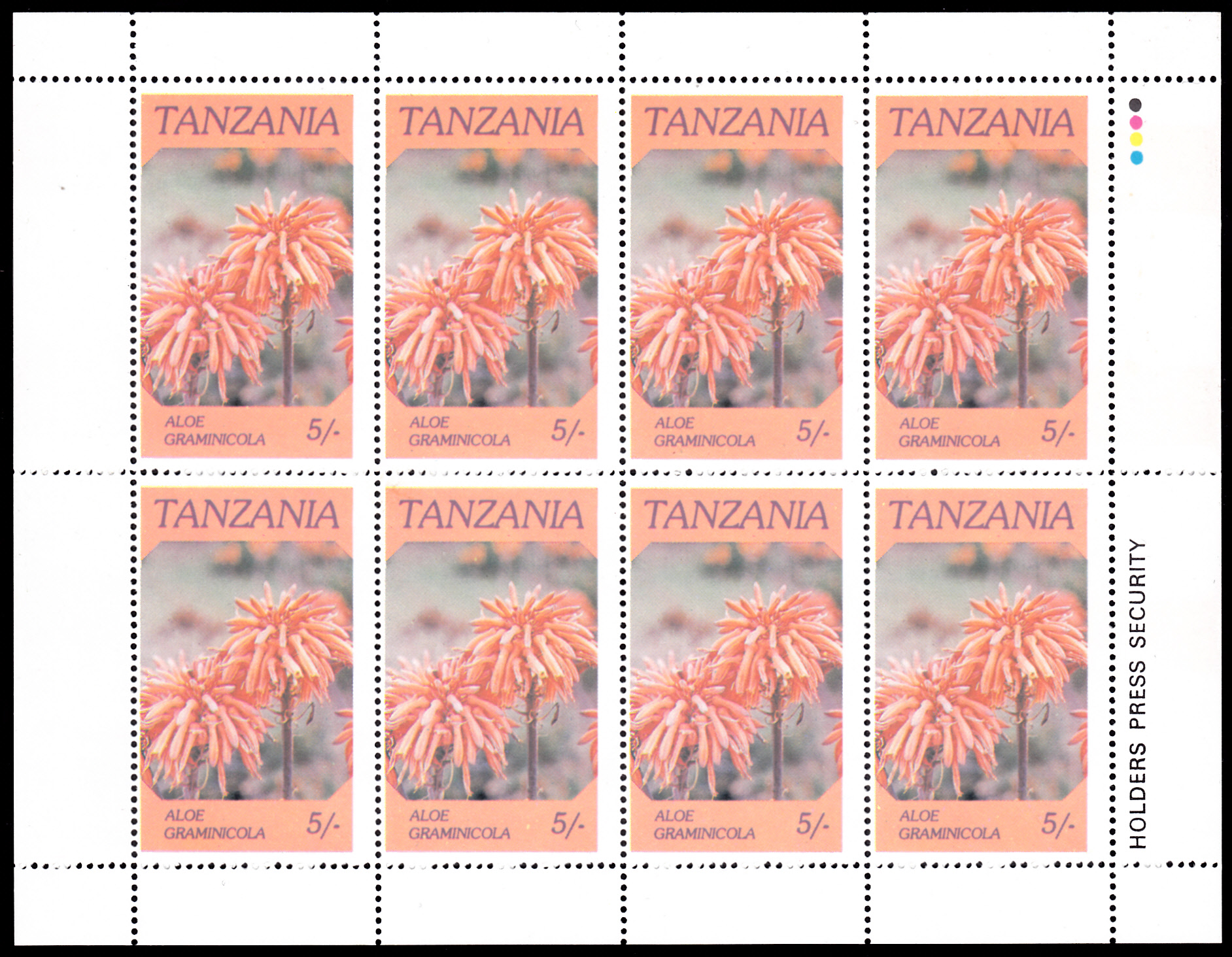 Auf dieser Marke aus Tansania (MiNr 325) sind Blüten der Aloe graminicola zu sehen.