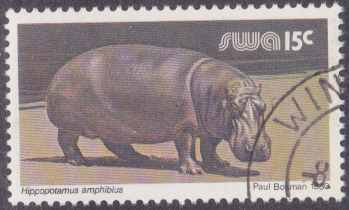 Auf dieser Marke aus Angola (MiNr 385) wird ein Flusspferd (Hippopotamus amphibius) gezeigt.