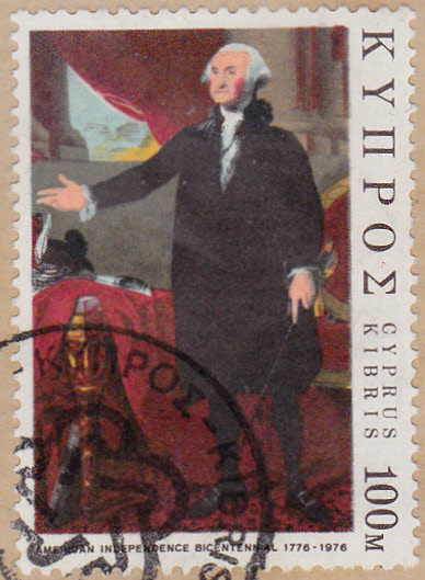 Auf Zypern erschien 1976 eine Marke (MiNr 457) zum Thema "200 Jahre Unabhängigkeit der Vereinigten Staaten von Amerika". Im Markenbild sehen wir George Washington nach einem Gemälde von Rembrandt Peale (1778-1860).