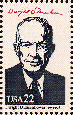Am 6. Aug. 1970 erschien in der Freimarkenserie "Berühmte Amerikaner" eine Marke zu 6 Cent (MiNr 1005) mit einem Porträt von Dwight D. Eisenhower. Die Marke gibt es in insgesamt 11 Variationen.