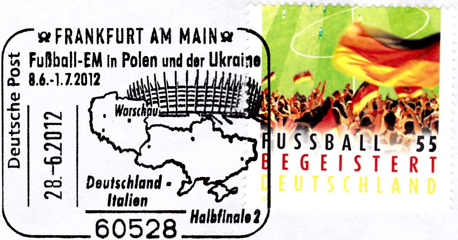 Zum Gewinn der Fußball-Europameisterschaft in Polen und der Ukraine durch die spanische Nationalmannschaft ist in Spanien ein Block (MiNr Block 230 mit Marke MiNr 4739) erschienen. Die Marke zeigt den EM-Pokal, auf dem Block sehen wir die Spanische Nationalmannschaft.