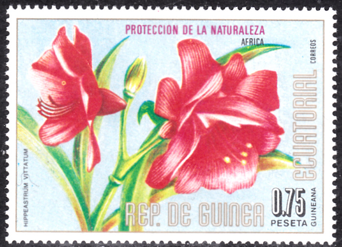 Aus Äquatorial-Guinea kommt diese Marke (MiNr 984) mit Blüten des Hippeastrum vittatum.
