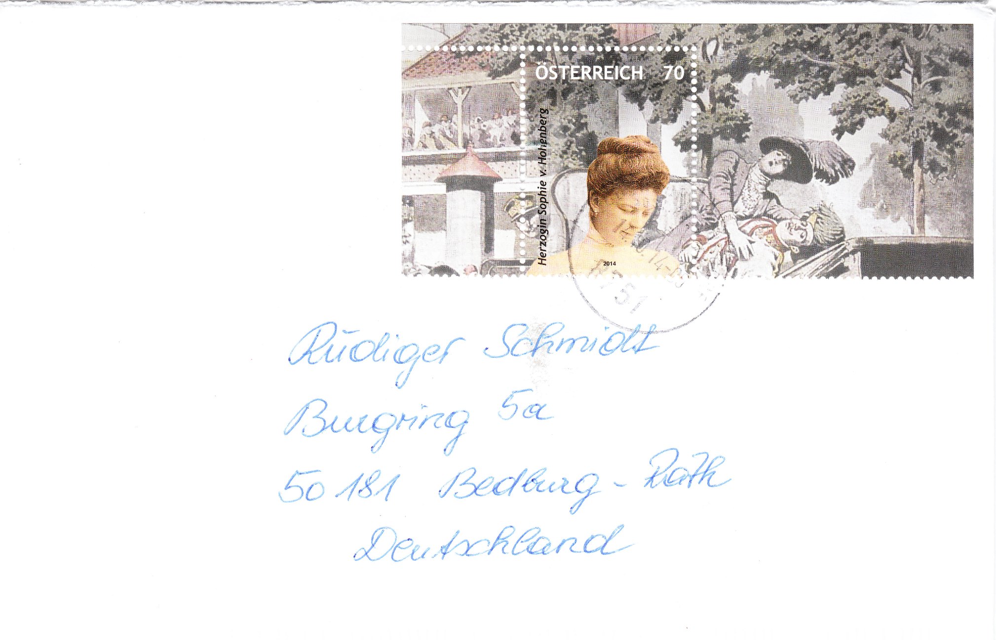 Eines der beiden Postwertzeichen daraus habe ich als Einzelfrankatur auf einem Brief zuadressiert bekommen: