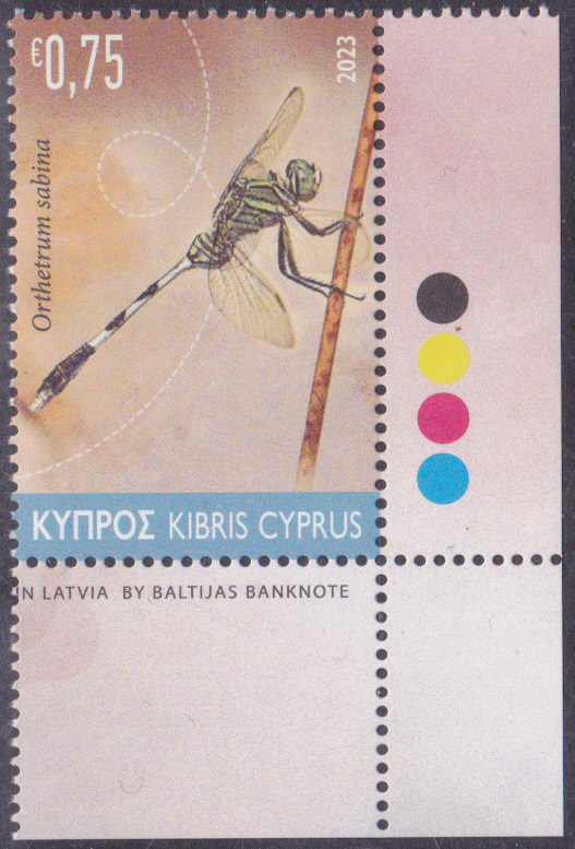 Aus Zypern kommt diese Marke (MiNr 1503) mit einem Schlanken Blaupfeil (Orthetrum sabina).