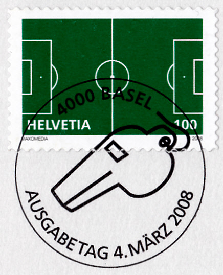 In der Schweiz ist zu den Europameisterschaften 2008 diese Marke (MiNr 2044) mit der Abbildung eines Fußballspielfeldes erschienen. Hier wurde die Marke mit dem Ersttagsonderstempel gestempelt.