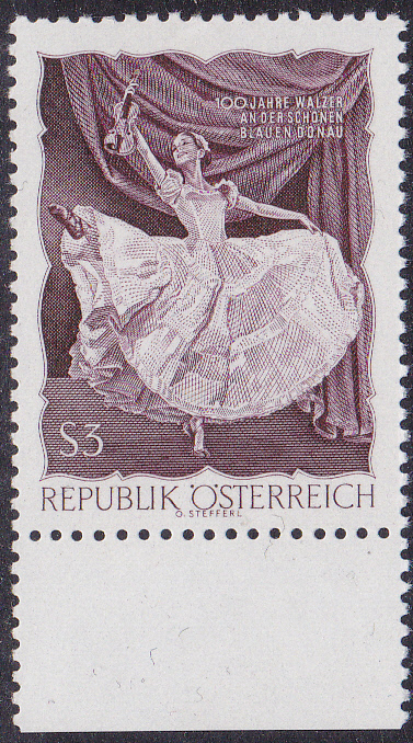 Zum Jubiläum 100 Jahre Walzer "An der schönen blauen Donau" ist in Österreich eine Marke (MiNr 1233) mit der Abbildung einer Tänzerin beim Ballettwalzer erschienen.