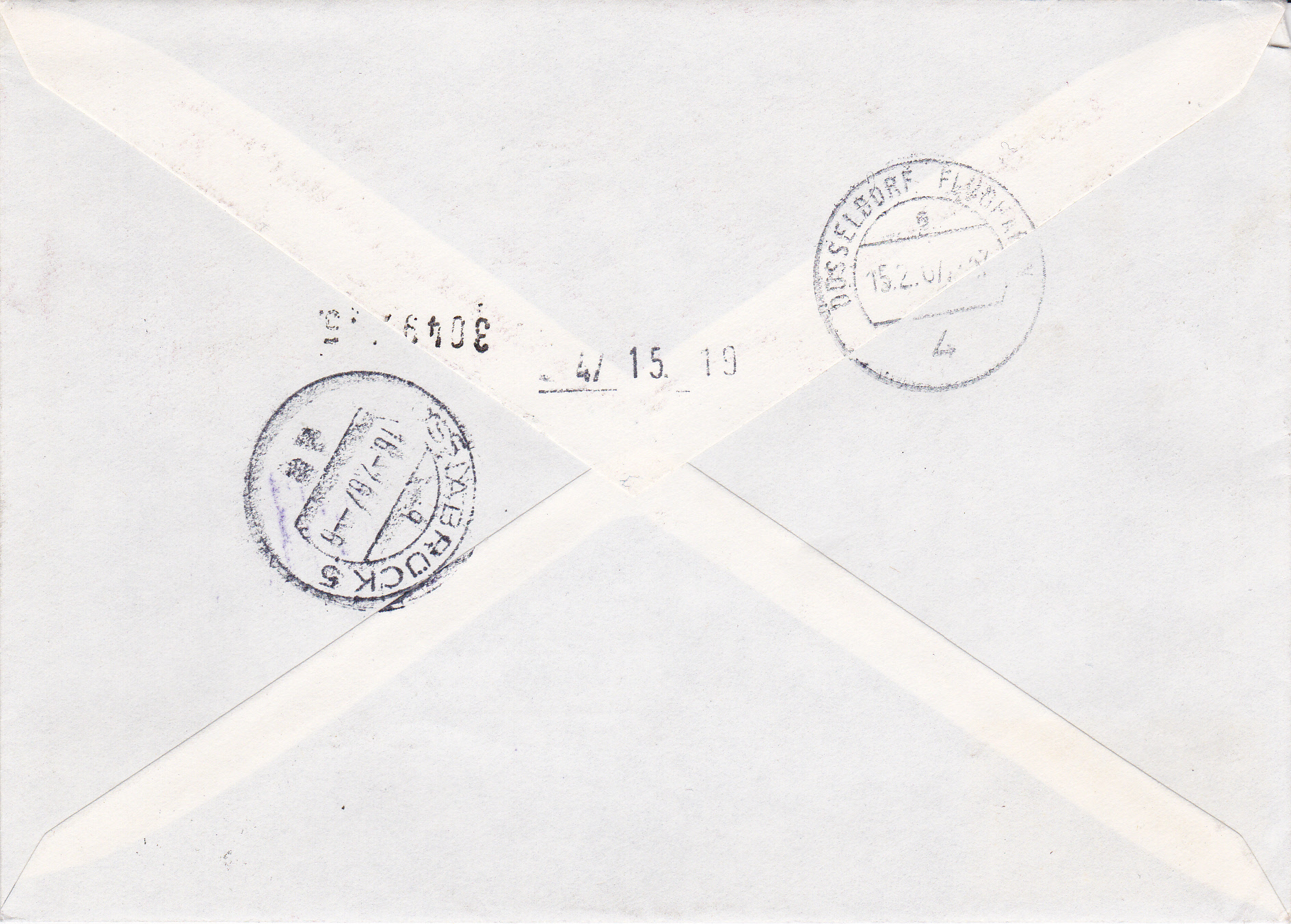 Brief mit Eilzustellung von Wien nach Osnabrück mit vier Marken "100 Jahre Walzer An der schönen blauen Donau" mit einem Sonderstempel aus Wien vom 15.2.1967, dem Ersttag der Marke.