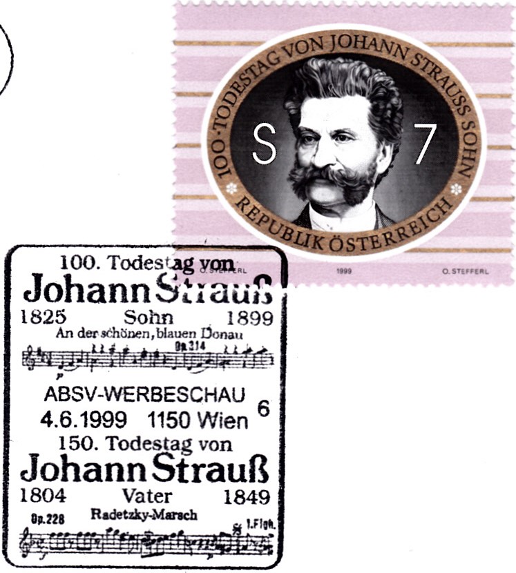 Zum 100. Todestag von 100. Todestag von Johann Strauß Sohn ist auch in Österreich eine Marke (MiNr 2285) mit seinem Porträt erschienen.