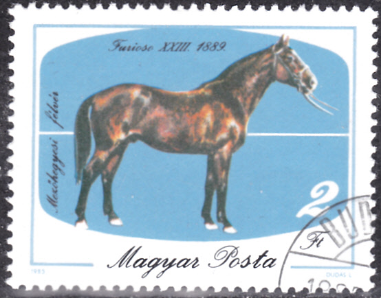 1985 verausgabte die Post in Ungarn eine Markenserie "200 Jahre Pferdezucht in Mezöhegyes". Aus dieser Serie stammt diese Marke (MiNr 3766) mit dem Pferd Nonius XXXVI. (1883).