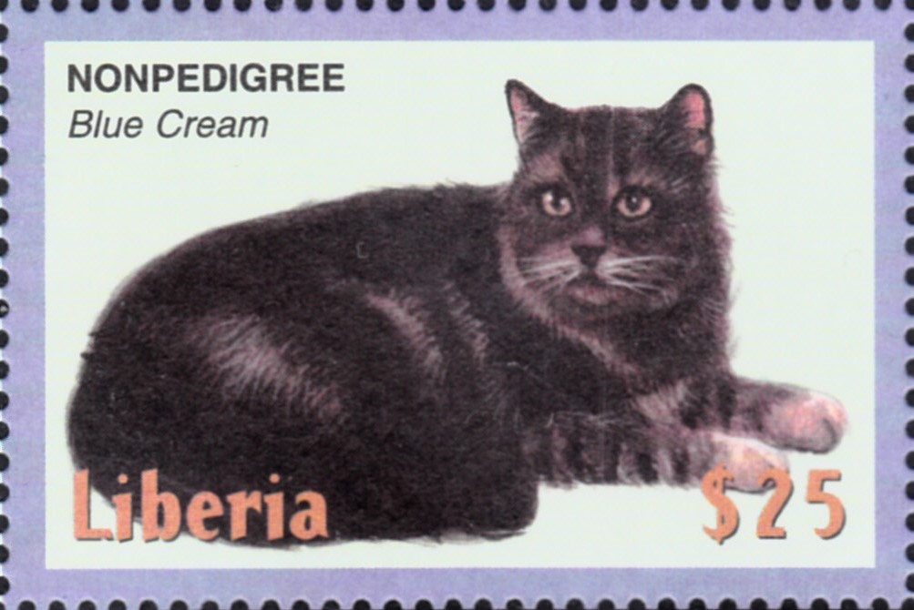 Auf dieser Marke aus Liberia (MiNr 2537) wird eine solche "nonpedigree" gezeigt. In Deutsch würden wir vermutlich einfach "Hauskatze" sagen.