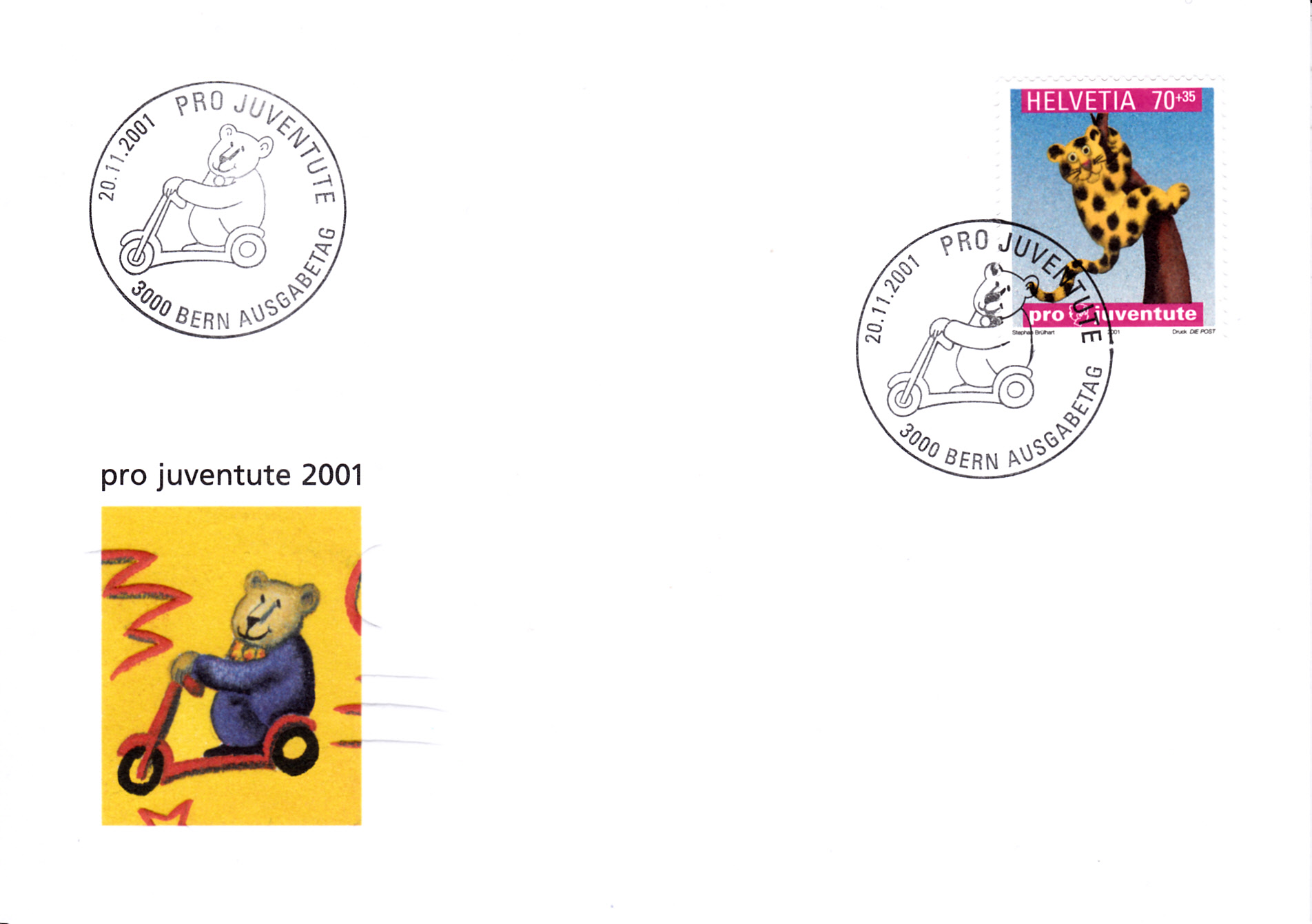 Es gibt von der Post der Schweiz auch den FDC mit allen vier Marken der Pro Juventute 2001.