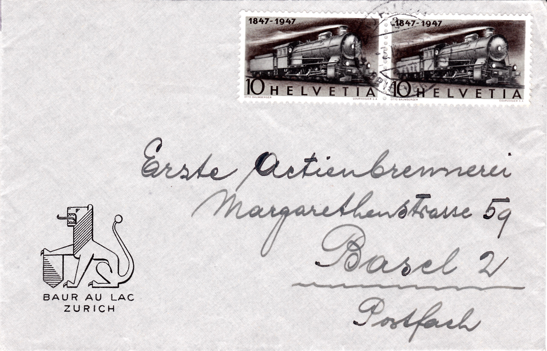 In der Schweiz istb 1947 eine Serie zum Jubiläum "100 Jahre Schweizer Eisenbahnen" erschienen. Hier die Marke zu 5 Rappen (MiNr 484) mit der Abbildung der ersten schweizer Lokomotive hieß "Limmat".